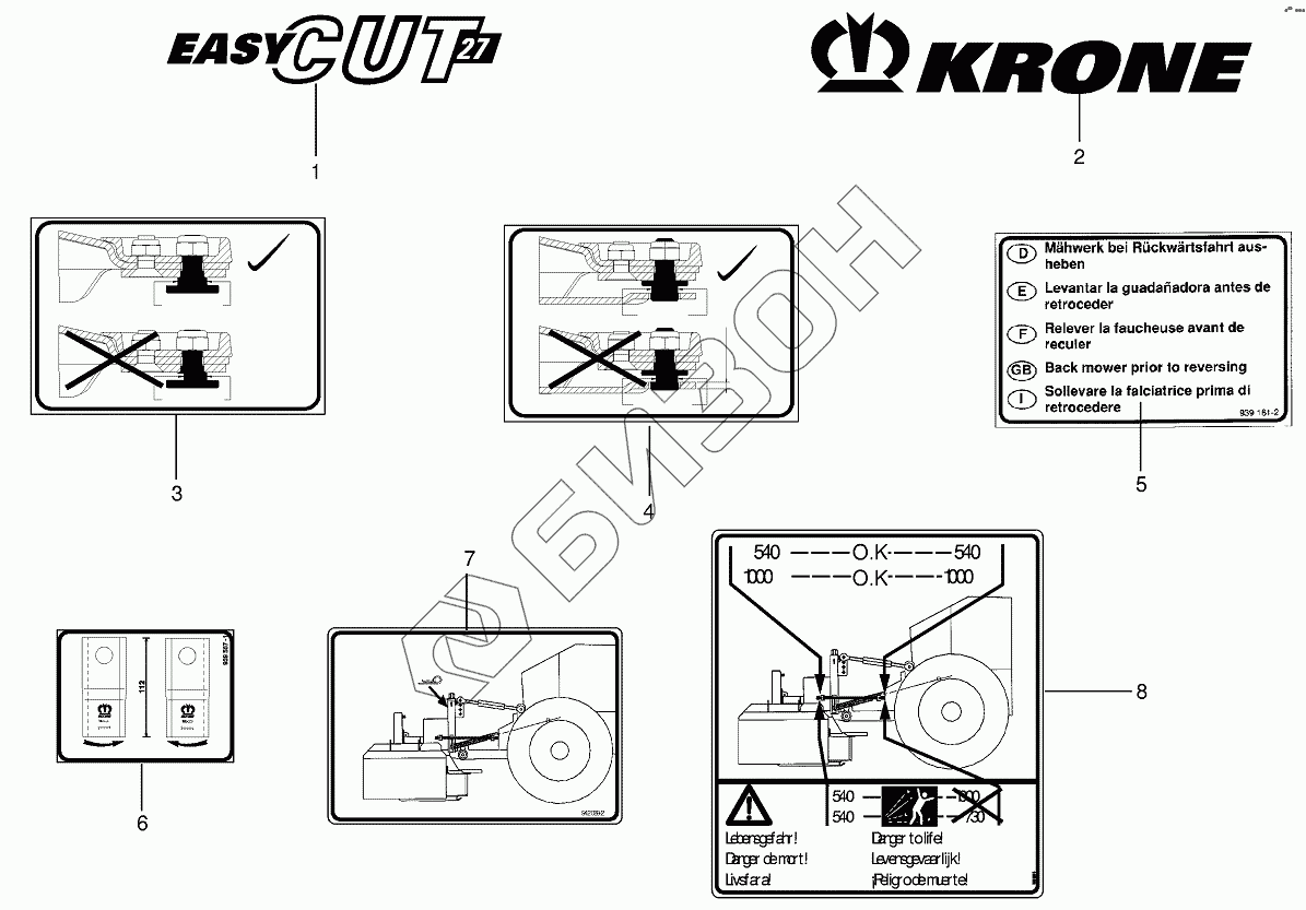 Графический каталог запасных частей к технике: KRONE EC 27/32. General information labels