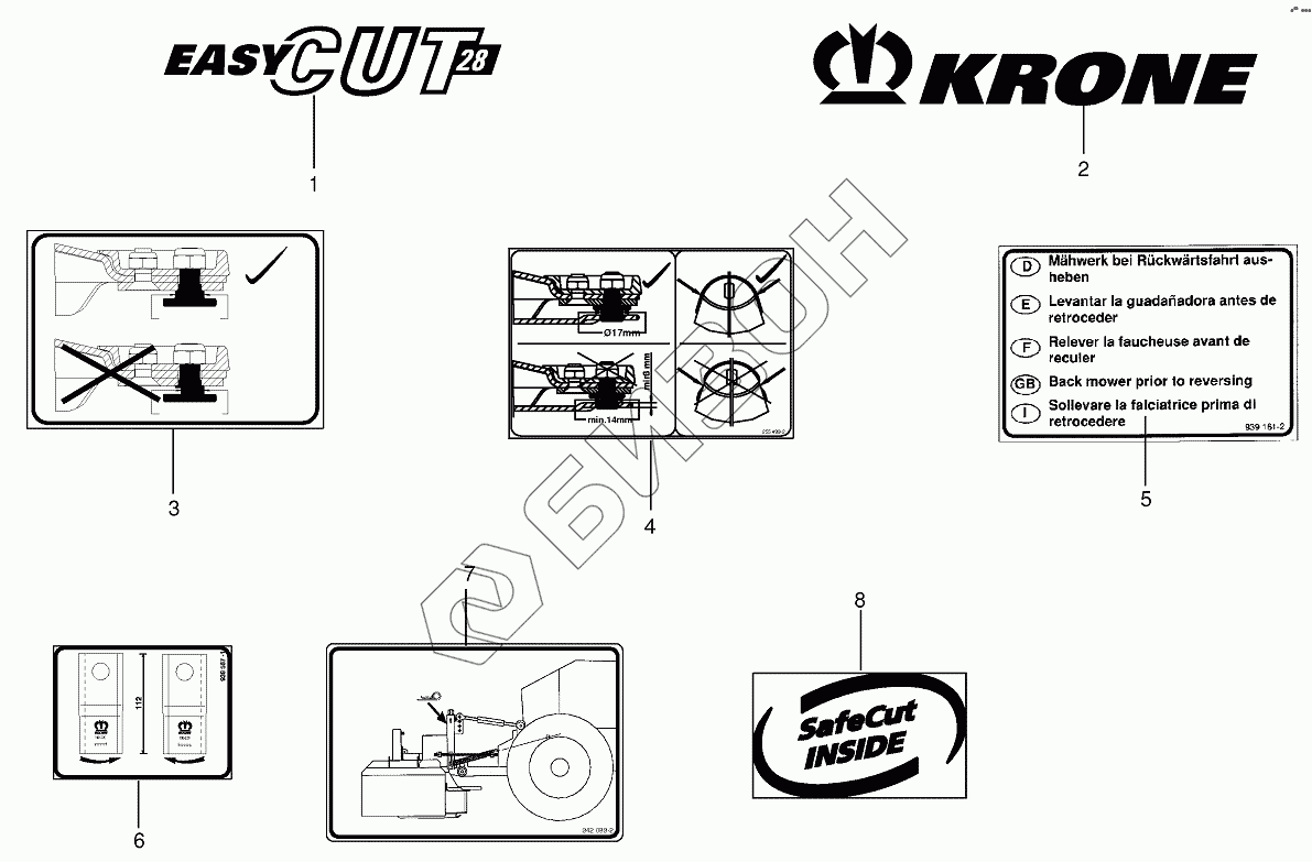 Графический каталог запасных частей к технике: KRONE EC 28/32. General information labels