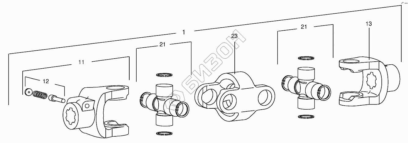 Графический каталог запасных частей к технике: KRONE EC 28/32. Double universal joint Walterscheid