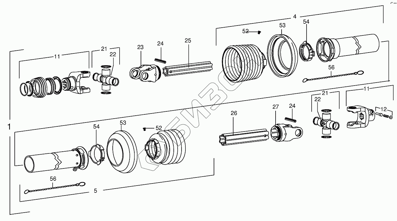Графический каталог запасных частей к технике: KRONE EC 28/32CV. Main Pto shaft