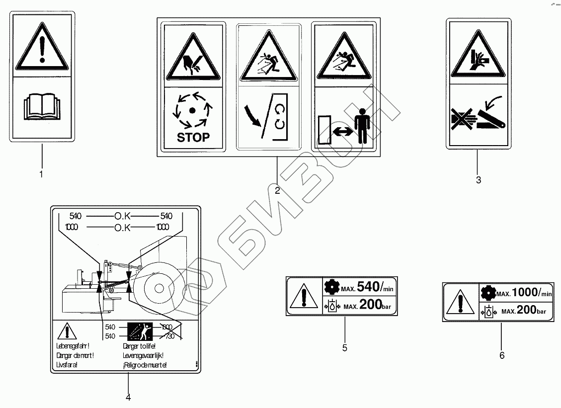 Графический каталог запасных частей к технике: KRONE EC 28/32M. Warning signs