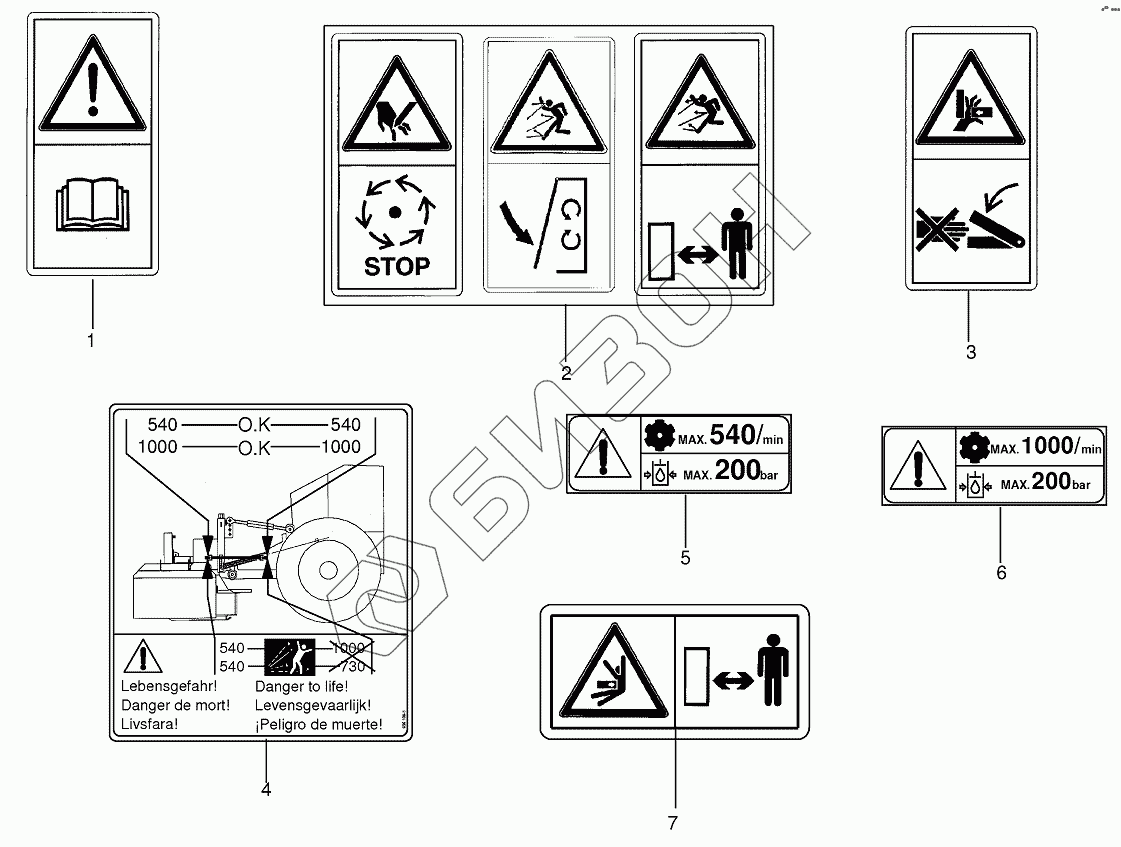 Графический каталог запасных частей к технике: KRONE EC 28/32M. Warning signs