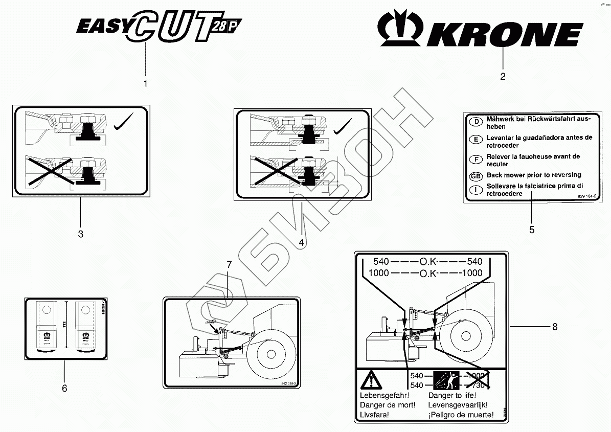 Графический каталог запасных частей к технике: KRONE EC 28/32P. General information labels