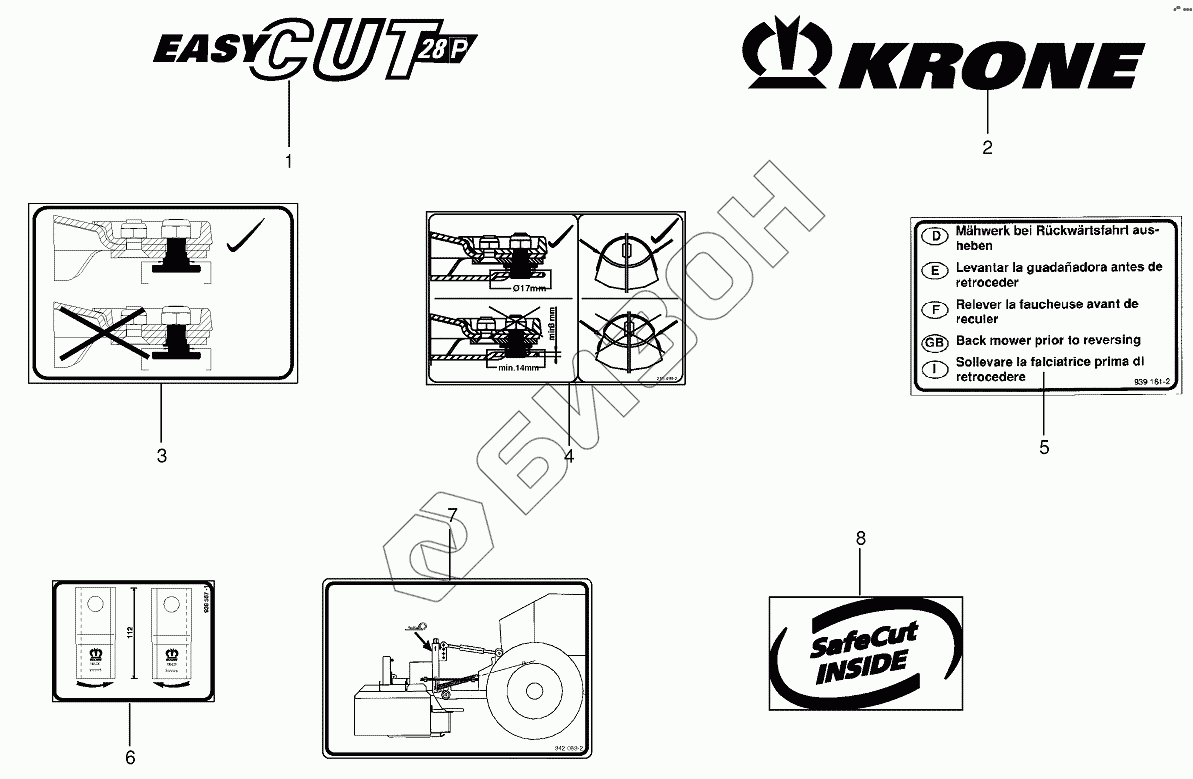 Графический каталог запасных частей к технике: KRONE EC 28/32P. General information labels