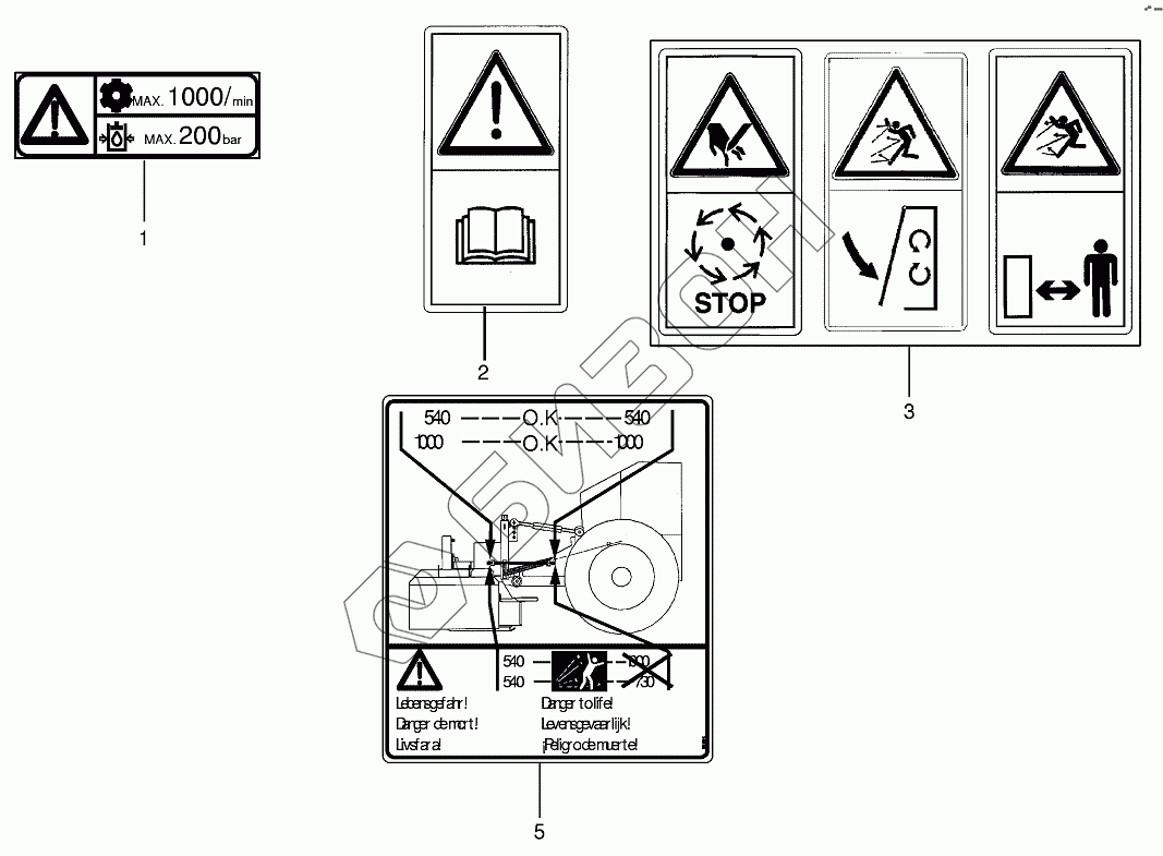 Графический каталог запасных частей к технике: KRONE EC 32CRI. Warning signs