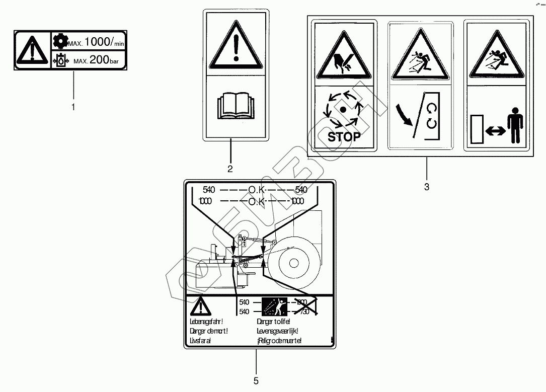 Графический каталог запасных частей к технике: KRONE EC 32CRI. Warning signs
