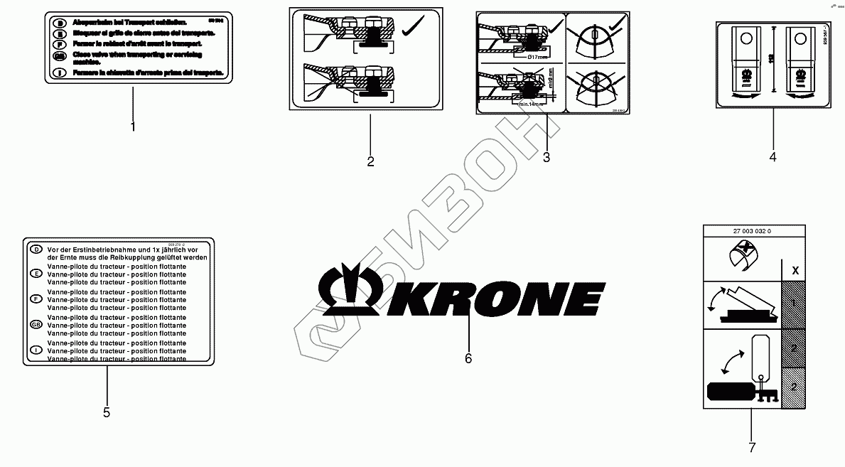 Графический каталог запасных частей к технике: KRONE EC 360/400. General information labels