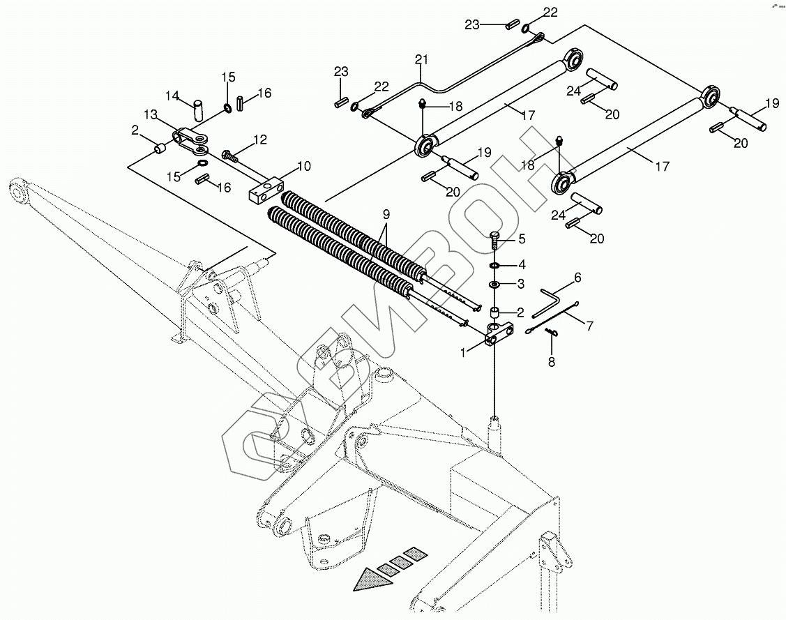 Графический каталог запасных частей к технике: KRONE EC 360/400. Spring compensation/Upper link