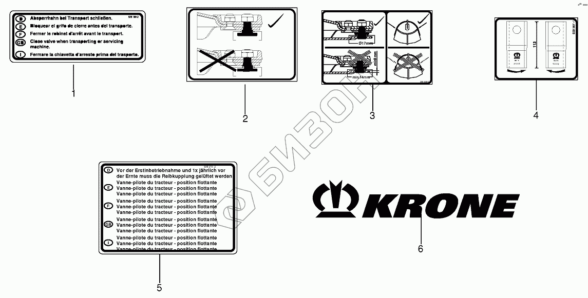 Графический каталог запасных частей к технике: KRONE EC 360/400. General information labels