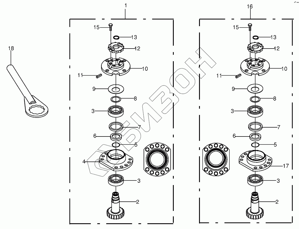 Графический каталог запасных частей к технике: KRONE EC F280/320/360. Bearing housing - SafeCut INSIDE