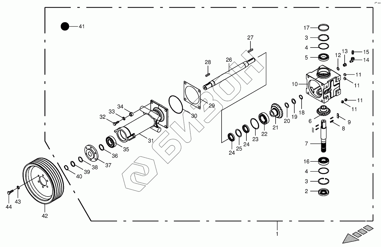 | 6 | 200354020 | Bevel pinion M=5.2 Z=19/23 90° lh. |
