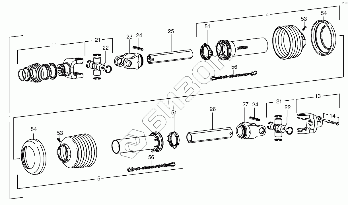 Графический каталог запасных частей к технике: KRONE EC F280/320/360. Main Pto shaft