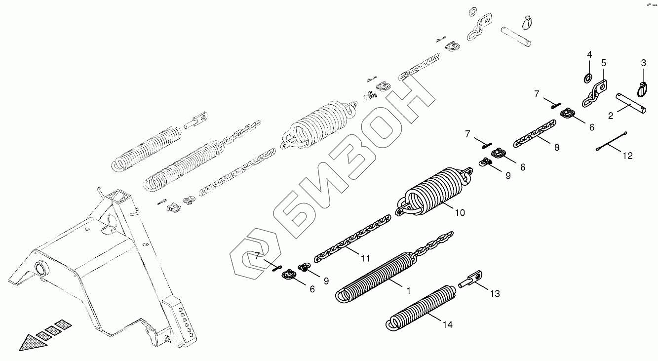 Графический каталог запасных частей к технике: KRONE EC F280/320/360. Spring compensation 853001 - 864000