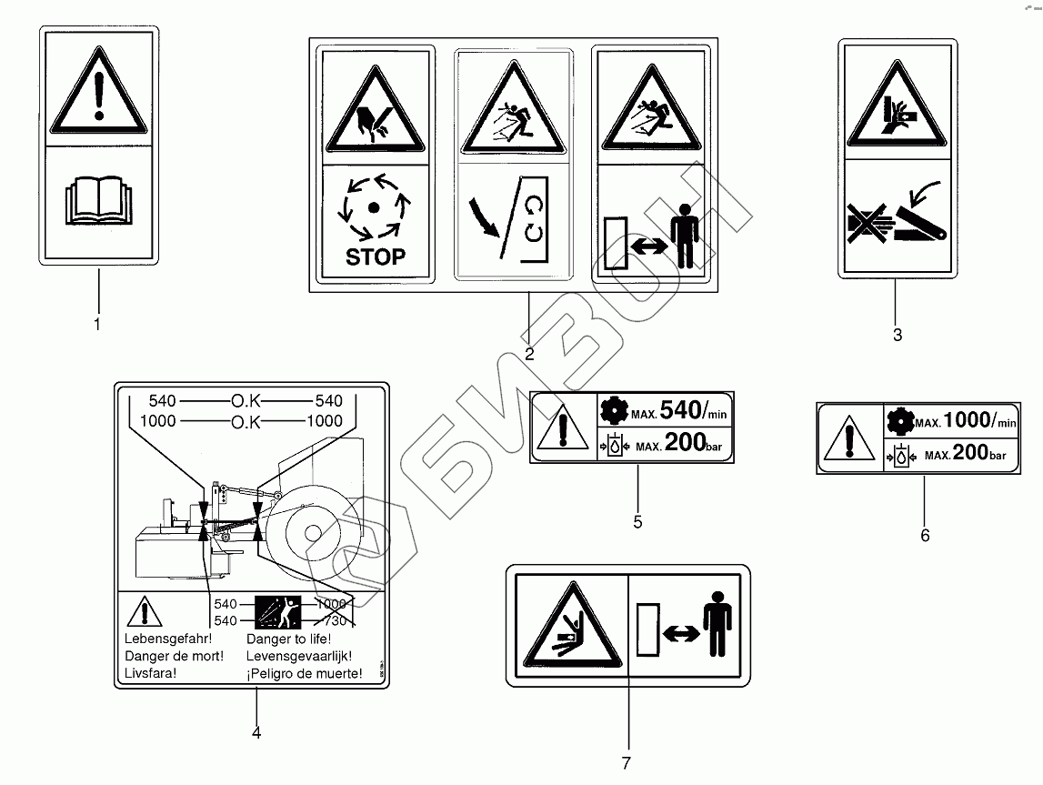 Графический каталог запасных частей к технике: KRONE EC F280/320/360. Warning signs