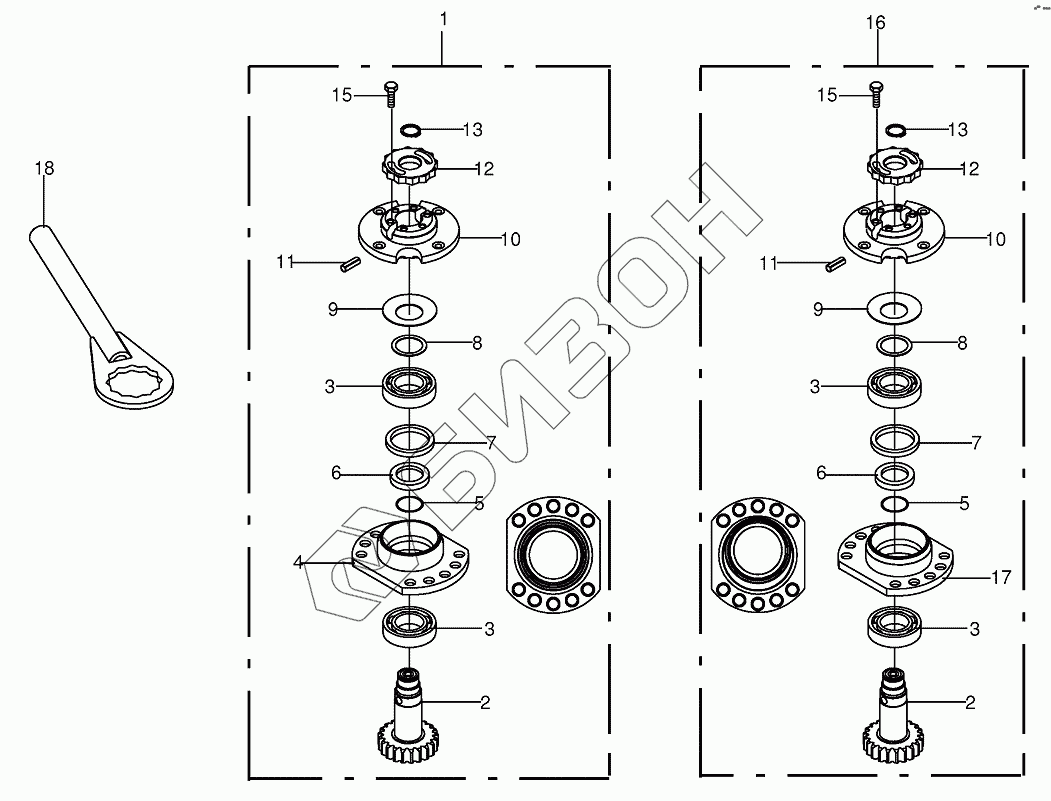 Графический каталог запасных частей к технике: KRONE EC F280 / F320. Bearing housing - SafeCut INSIDE