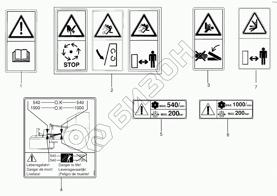 Графический каталог запасных частей к технике: KRONE EC F280 M. Warning signs