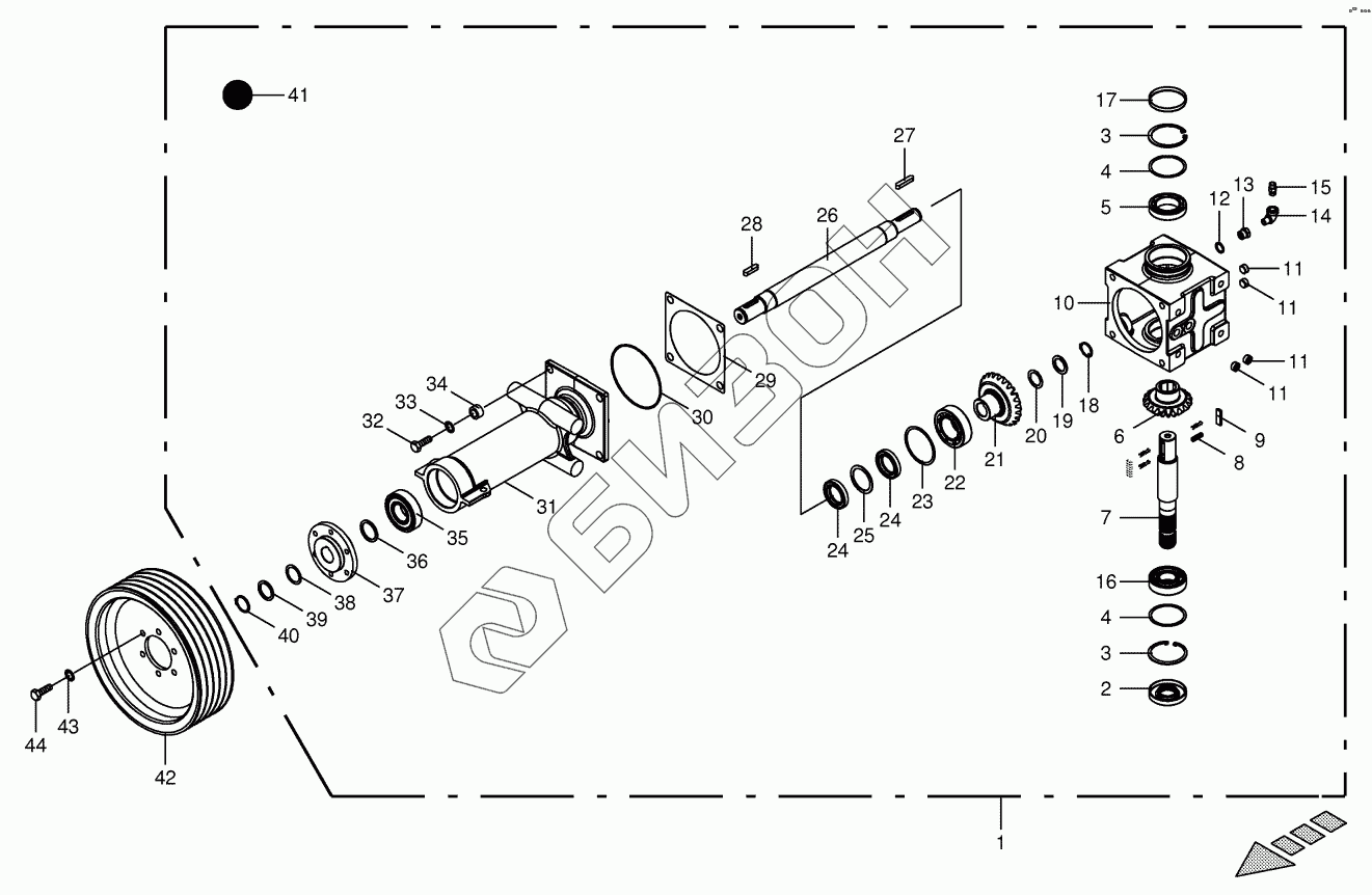| 6 | 200354020 | Bevel pinion M=5.2 Z=19/23 90° lh. |