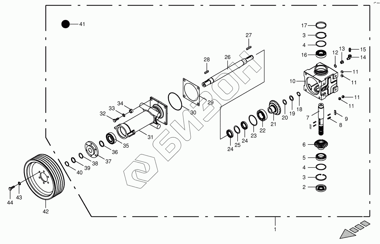 Графический каталог запасных частей к технике: KRONE EC F320. Gearbox - Clockwise