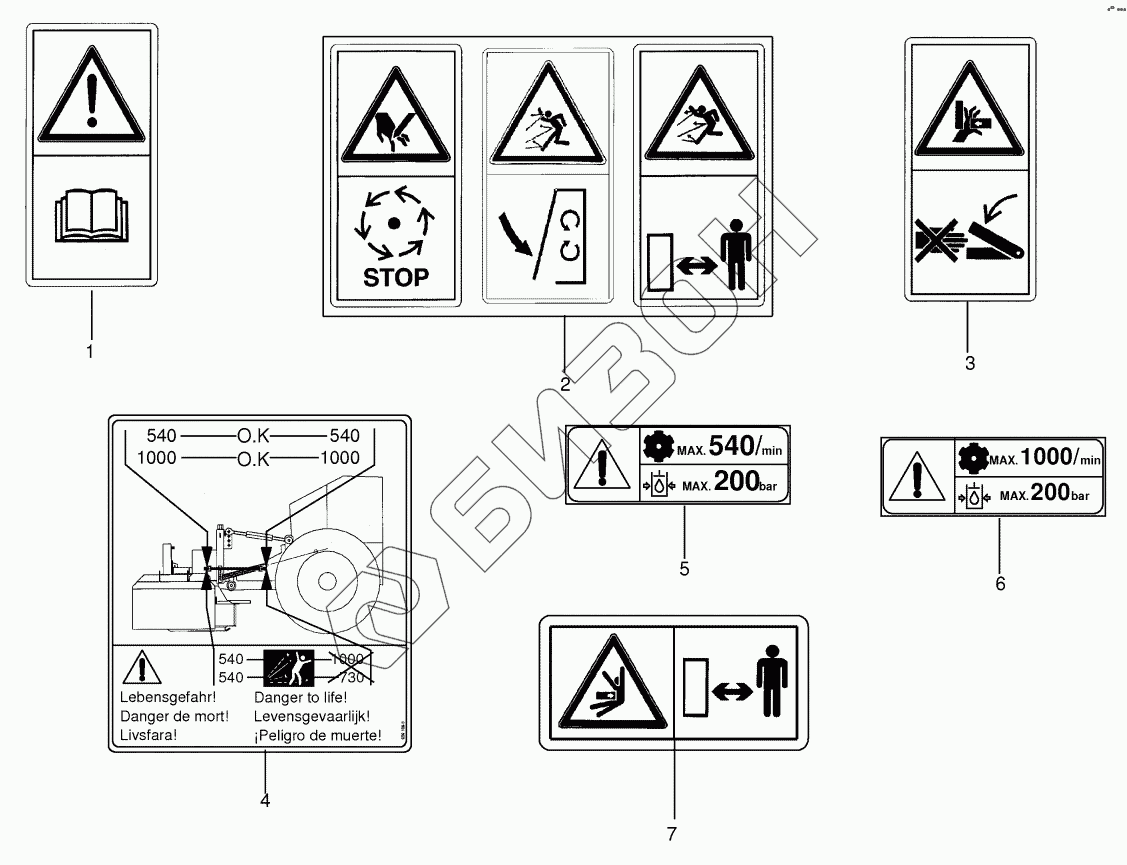Графический каталог запасных частей к технике: KRONE EC F320. Warning signs