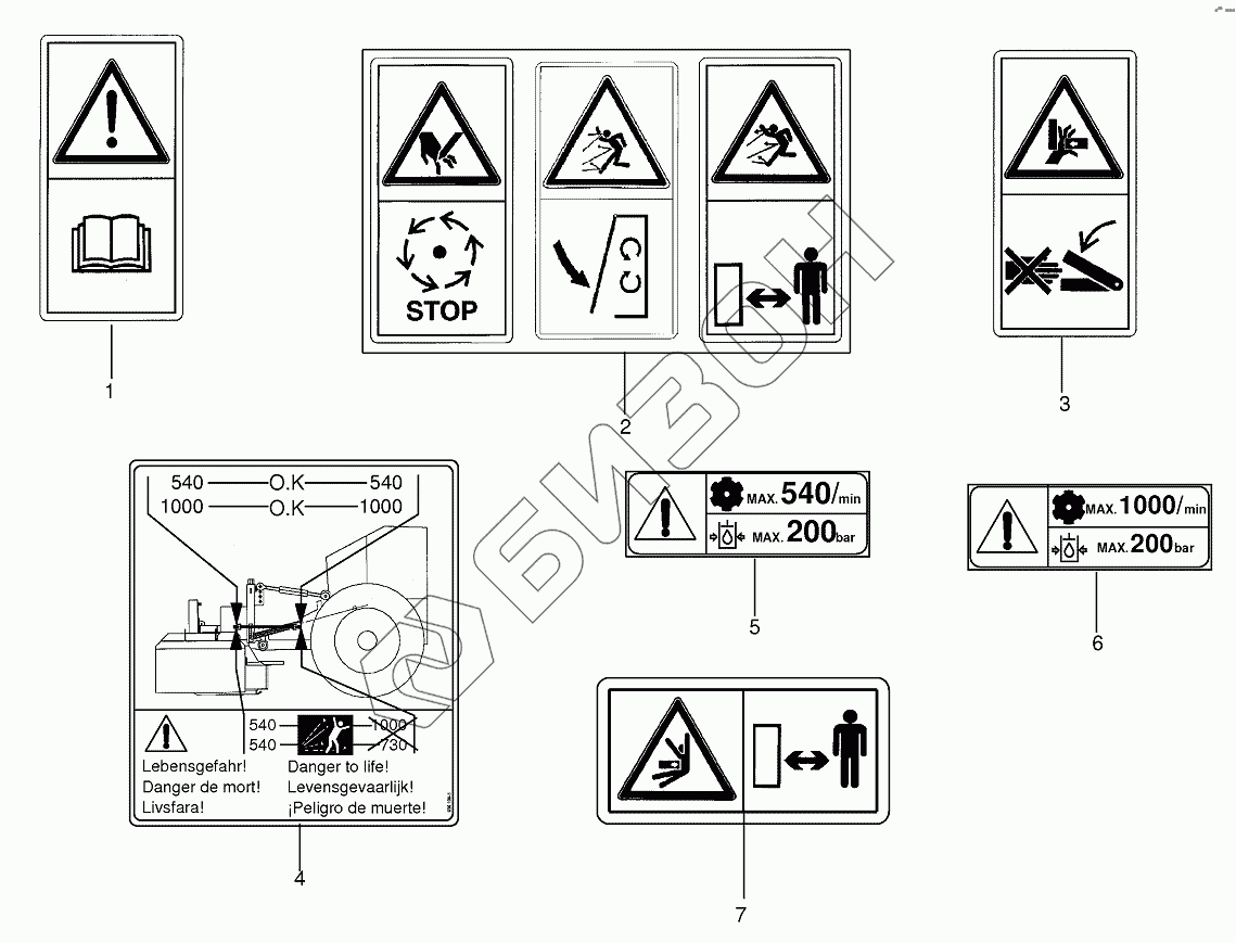 Графический каталог запасных частей к технике: KRONE EC F320 M. Warning signs