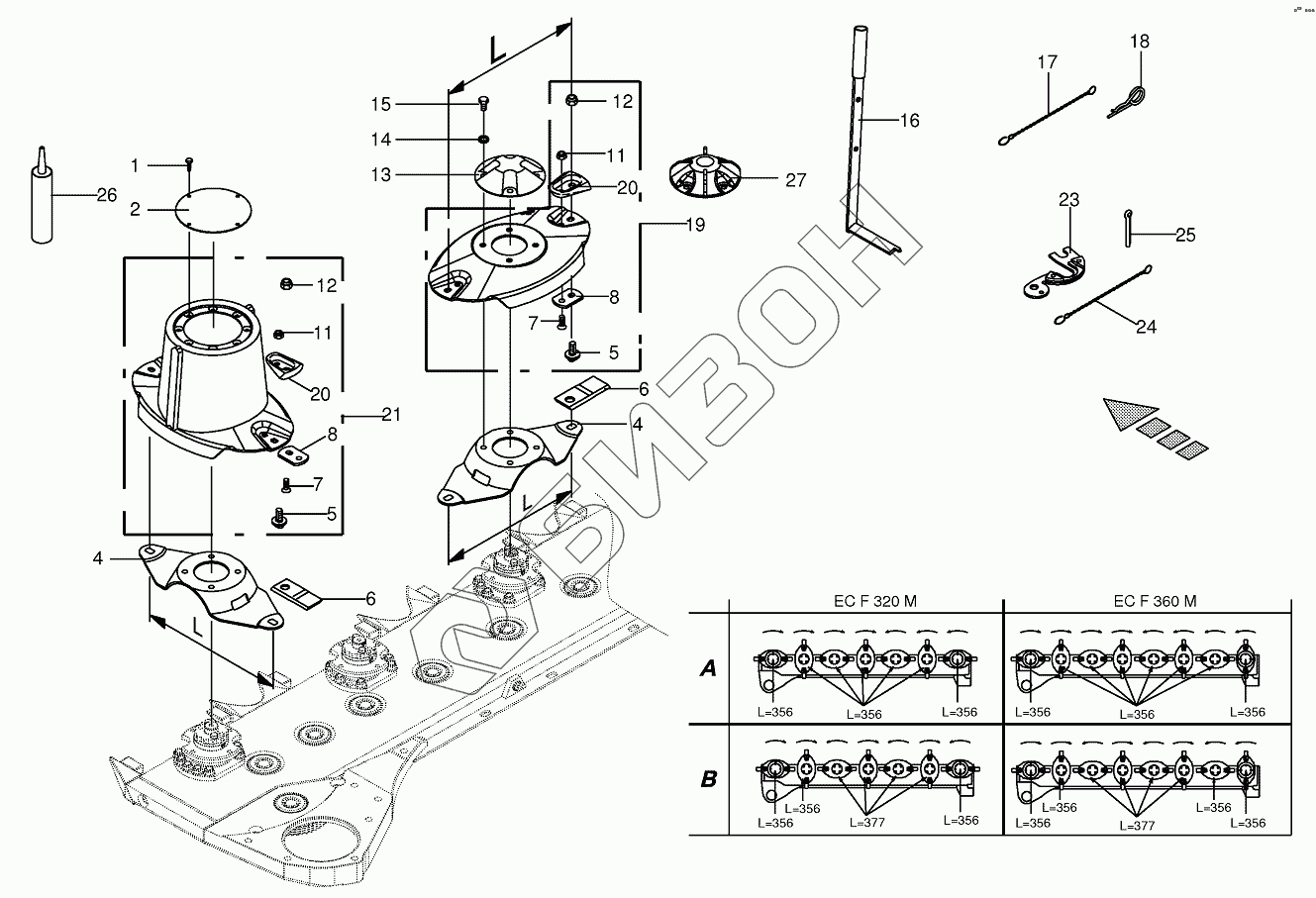 | 21 | 200376020 | Mower drum (356) quick rel. wide strip |