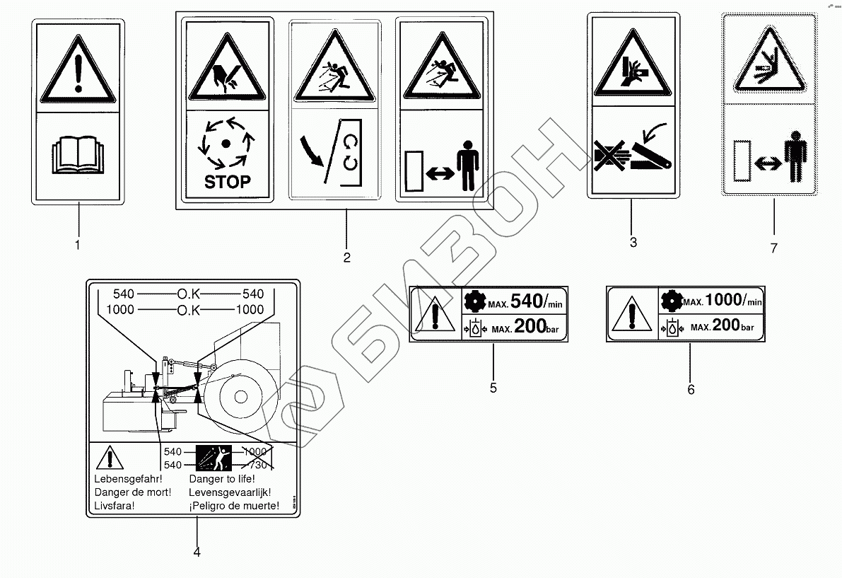 Графический каталог запасных частей к технике: KRONE EC F320M/F360M. Warning signs