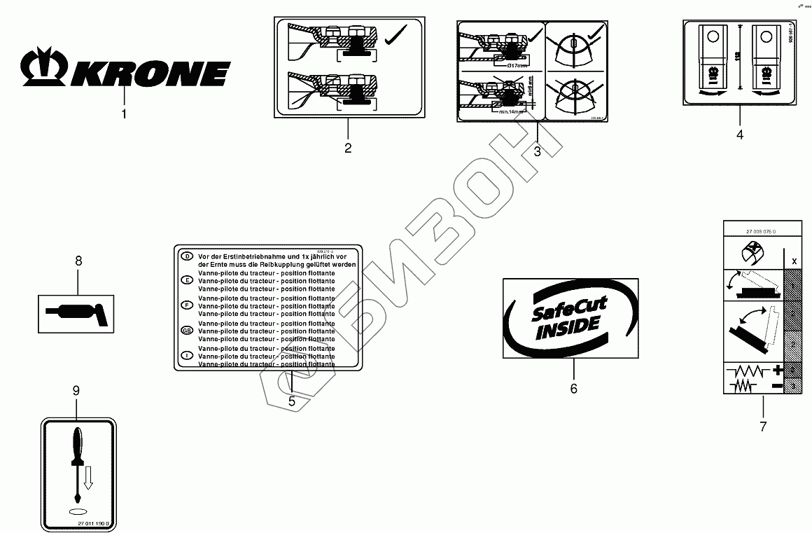 Графический каталог запасных частей к технике: KRONE EC R280. General information labels