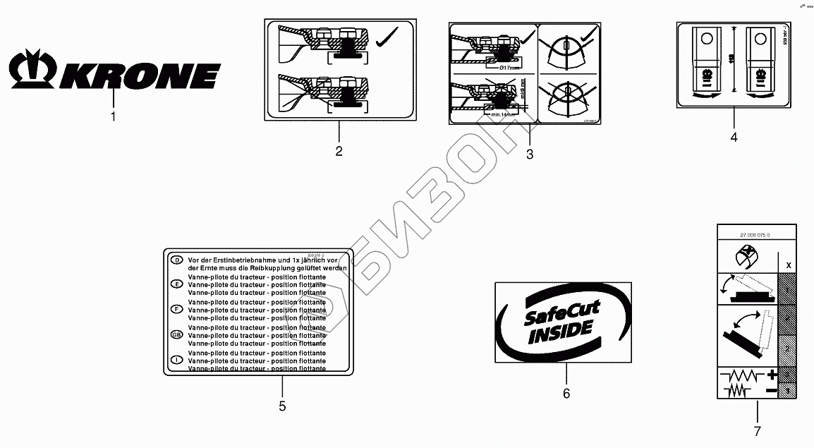 Графический каталог запасных частей к технике: KRONE EC R320. General information labels