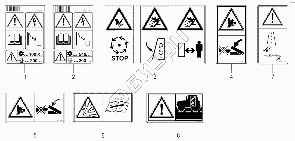 Графический каталог запасных частей к технике: KRONE EC R400. Warning signs