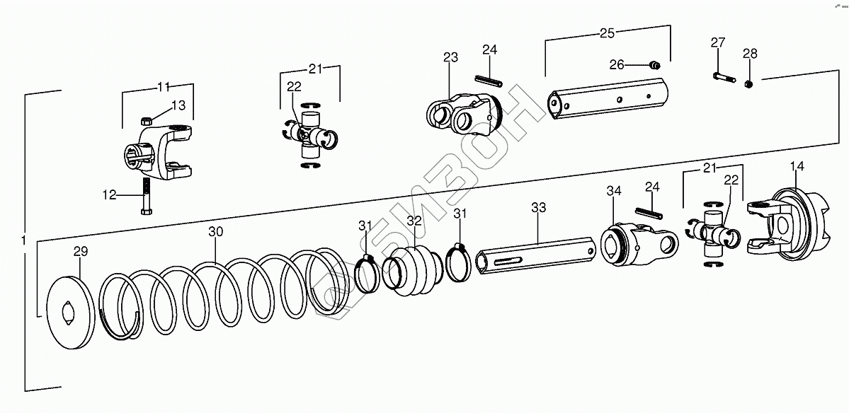 Графический каталог запасных частей к технике: KRONE ECollect753, 903, 1053. Pto drive shaft 34.0