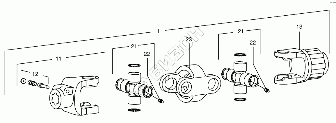 Графический каталог запасных частей к технике: KRONE ECollect753, 903, 1053. Double universal joint 820001 -