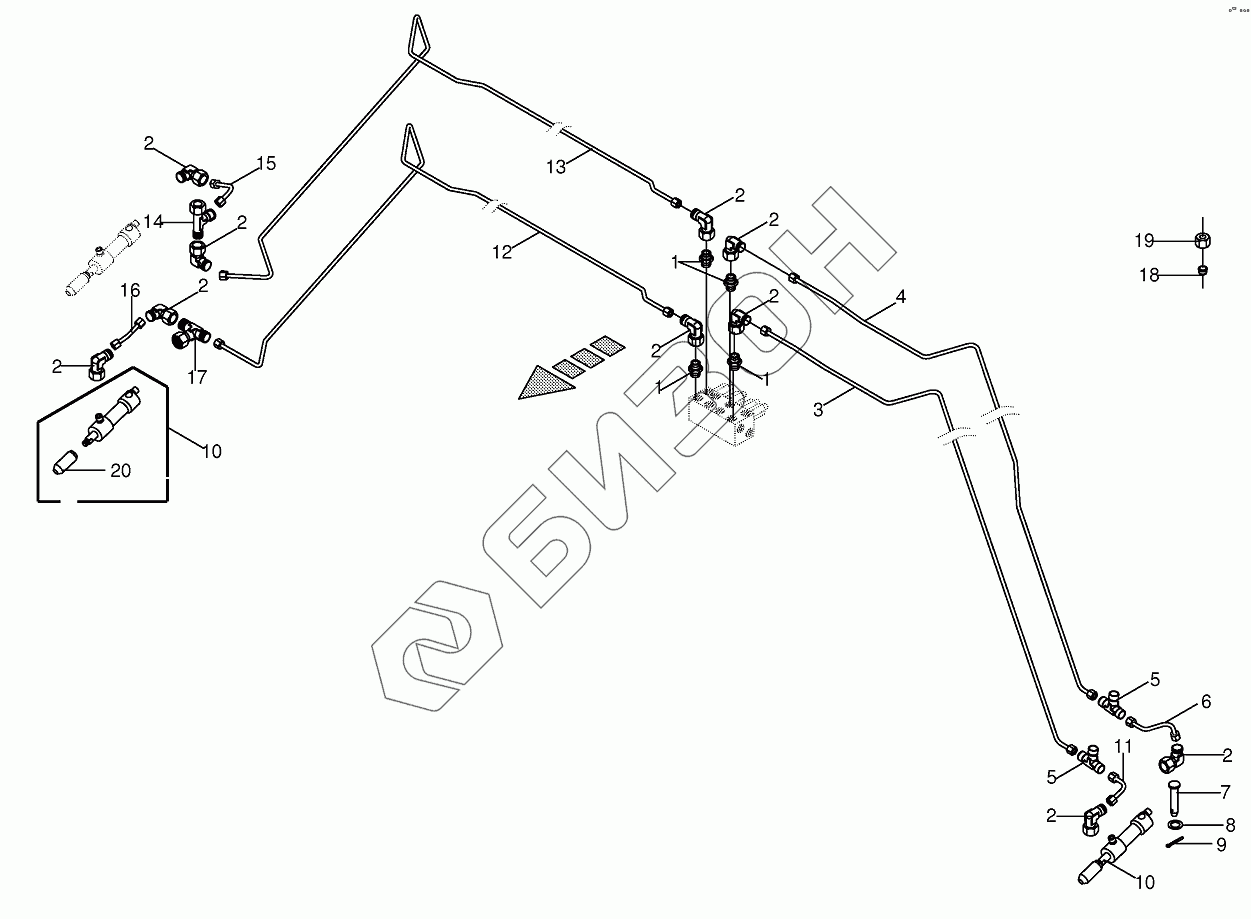 Графический каталог запасных частей к технике: KRONE ECollect753, 903, 1053. Hydraulics - locking mechanism 820001 - 855000