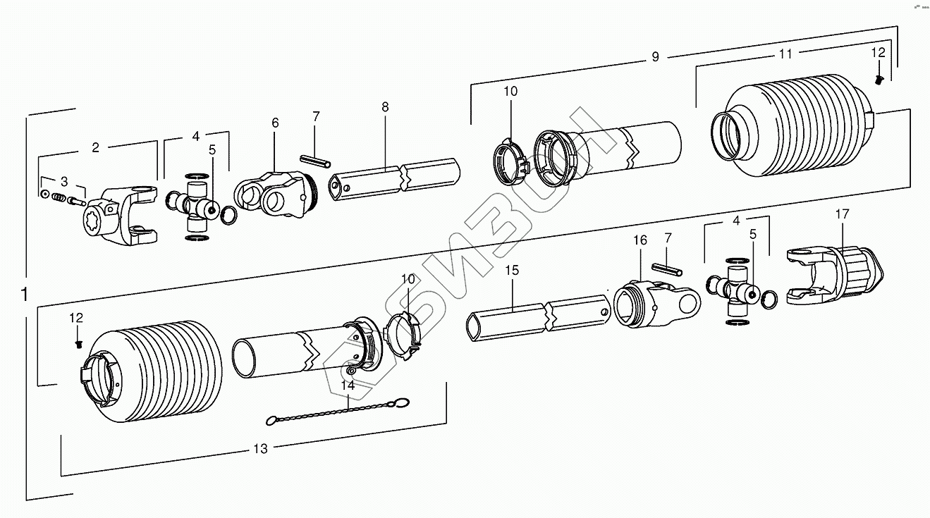 | 1 | 009559970 | Pto drive shaft-cpl. |