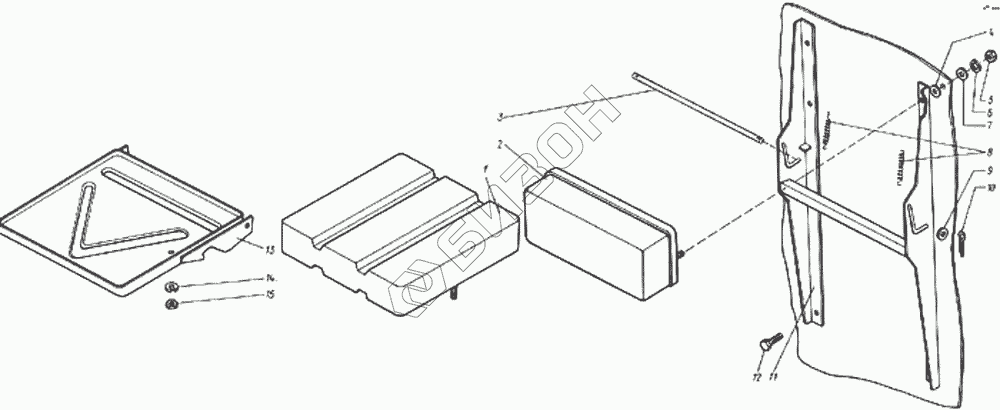 Графический каталог запасных частей к технике: КЗК Енисей 1200. Сиденье дополнительное К15.00.05.000