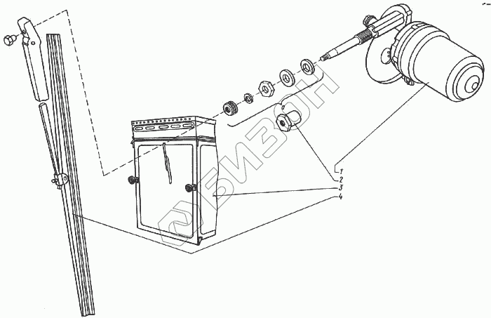 Графический каталог запасных частей к технике: КЗК Енисей 1200. Установка стеклоочистителя