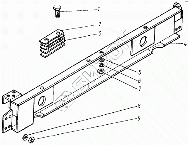 Графический каталог запасных частей к технике: КЗК Енисей 1200М. Балка моста (КДМ0-59В)