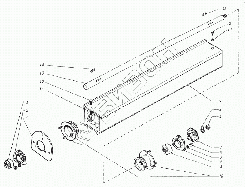 Графический каталог запасных частей к технике: КЗК Енисей 1200М. Битер приемный (КДМ2-7)