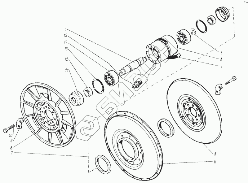 Графический каталог запасных частей к технике: КЗК Енисей 1200М. Блок шкивов (44-12-1А)
