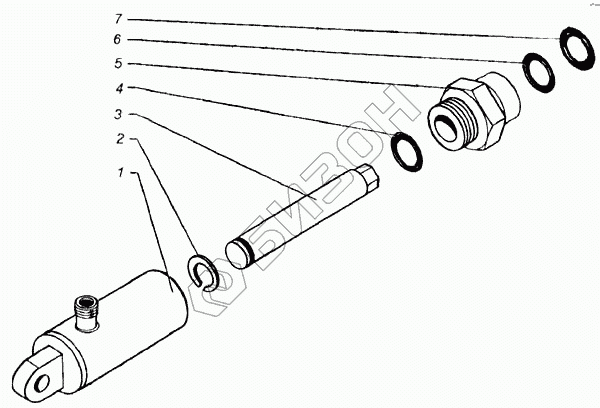 Графический каталог запасных частей к технике: КЗК Енисей 1200М. Гидроцилиндр (ГА-66010А)
