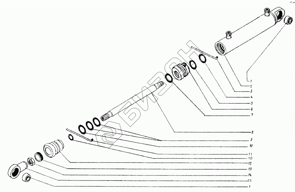 Графический каталог запасных частей к технике: КЗК Енисей 1200М. Гидроцилиндр (ГА-93000-02)