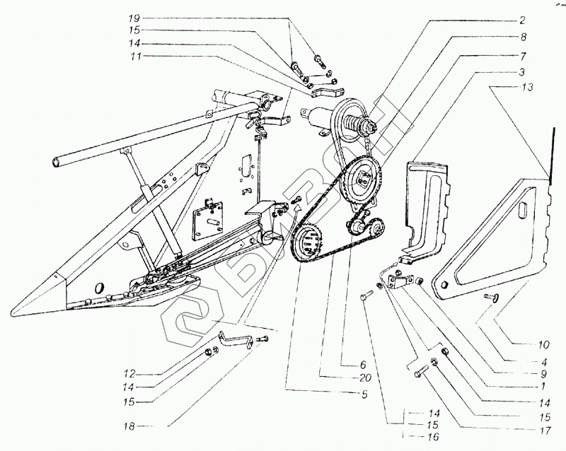 Графический каталог запасных частей к технике: КЗК Енисей 1200М. Механизм левой стороны жатки