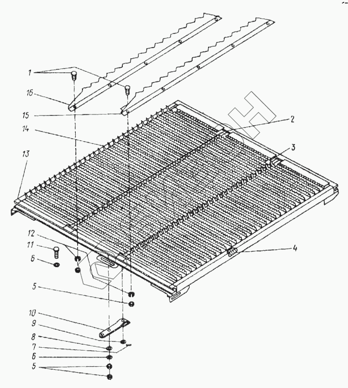 Графический каталог запасных частей к технике: КЗК Енисей 1200М. Решето нижнее (КДМ2-16-2А)
