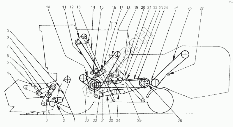 Графический каталог запасных частей к технике: КЗК Енисей 1200М. Схема передач левой стороны