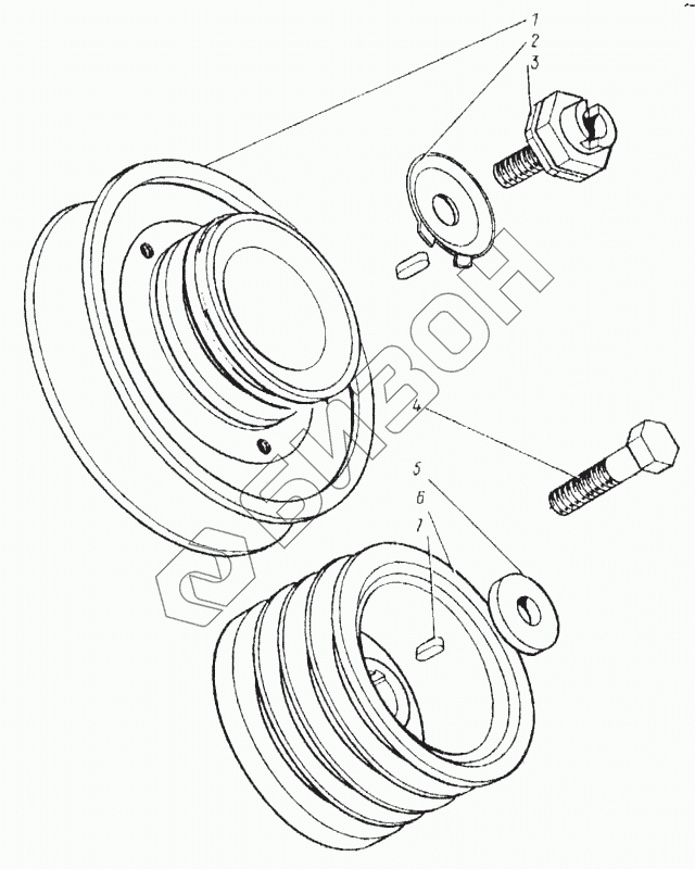 Графический каталог запасных частей к технике: КЗК Енисей 1200М. Шкивы двигателя