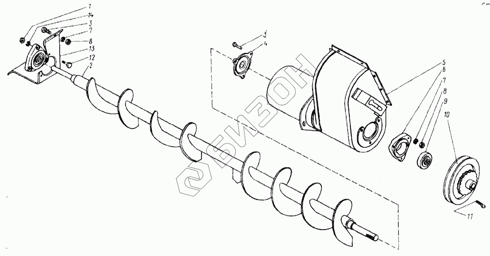 Графический каталог запасных частей к технике: КЗК Енисей 1200М. Шнек распределительный (КДМ6-5В)