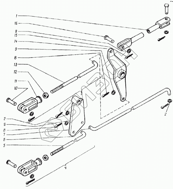 Графический каталог запасных частей к технике: КЗК Енисей 1200М. Тяги управления (КДМ0-62А)