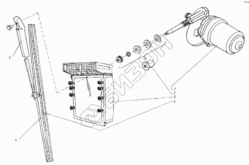 Графический каталог запасных частей к технике: КЗК Енисей 1200М. Установка стеклоочистителя