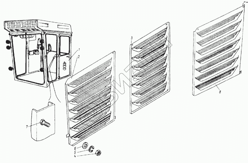 Графический каталог запасных частей к технике: КЗК Енисей 1200М. Установка жалюзи на кабине