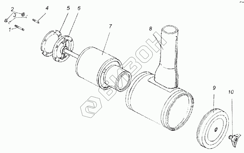 Графический каталог запасных частей к технике: КЗК Енисей 1200М. Воздухоочиститель (461-12с2-6)