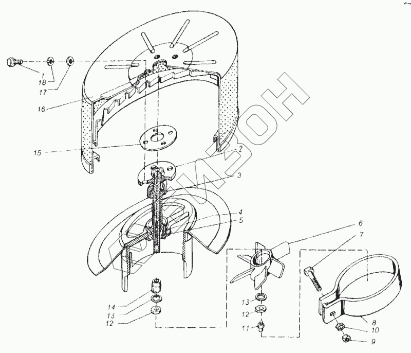 Графический каталог запасных частей к технике: КЗК Енисей 1200М. Воздухозаборник вращающийся (21-12С3)